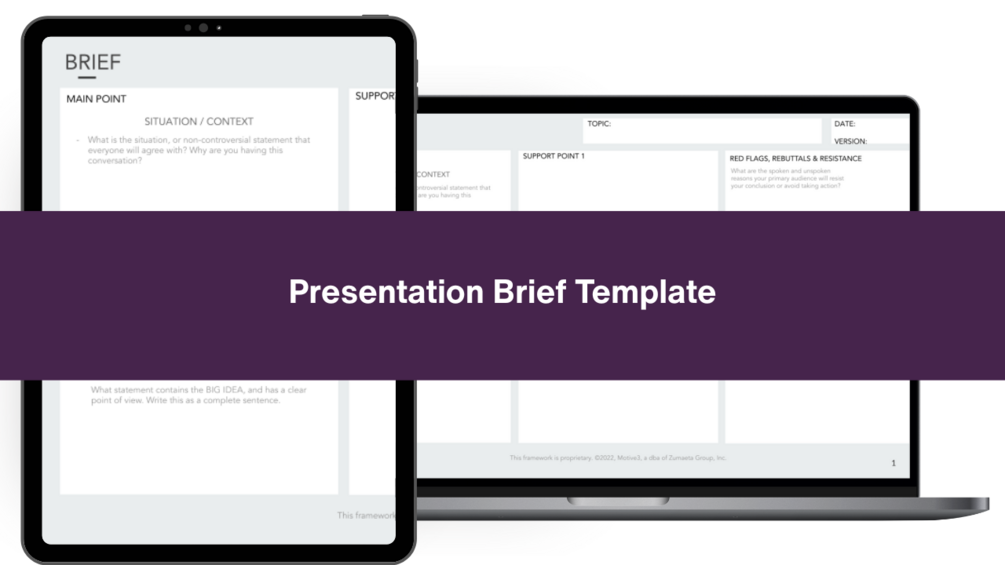 You'll get the presentation brief trusted by Fortune 500 executives to plan presentations that move the needle and get deals approved..